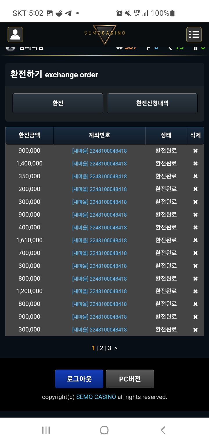 안녕하세요 세모카지노 이용하는유저입니다 사진보시다시피 다들 가장중요하게생각하는부분. 환전 걱정없이 잘나오구요 신규이벤트 너무좋아서 신규분들도 이용하시좋으실꺼에요. 또한 사이트네 이벤트 너무좋구요 말로하기보단. 직접 이용해보시면 아실껍니다 ㅎㅎ 누구나 첨이용할땐 낮설지만 써보셔야 안전성이 느껴지듯이 확실히 안전하게생각드네요 저는 ㅎㅎ. 이만 세모카지노 후기였습니다. 다들 건승하세요