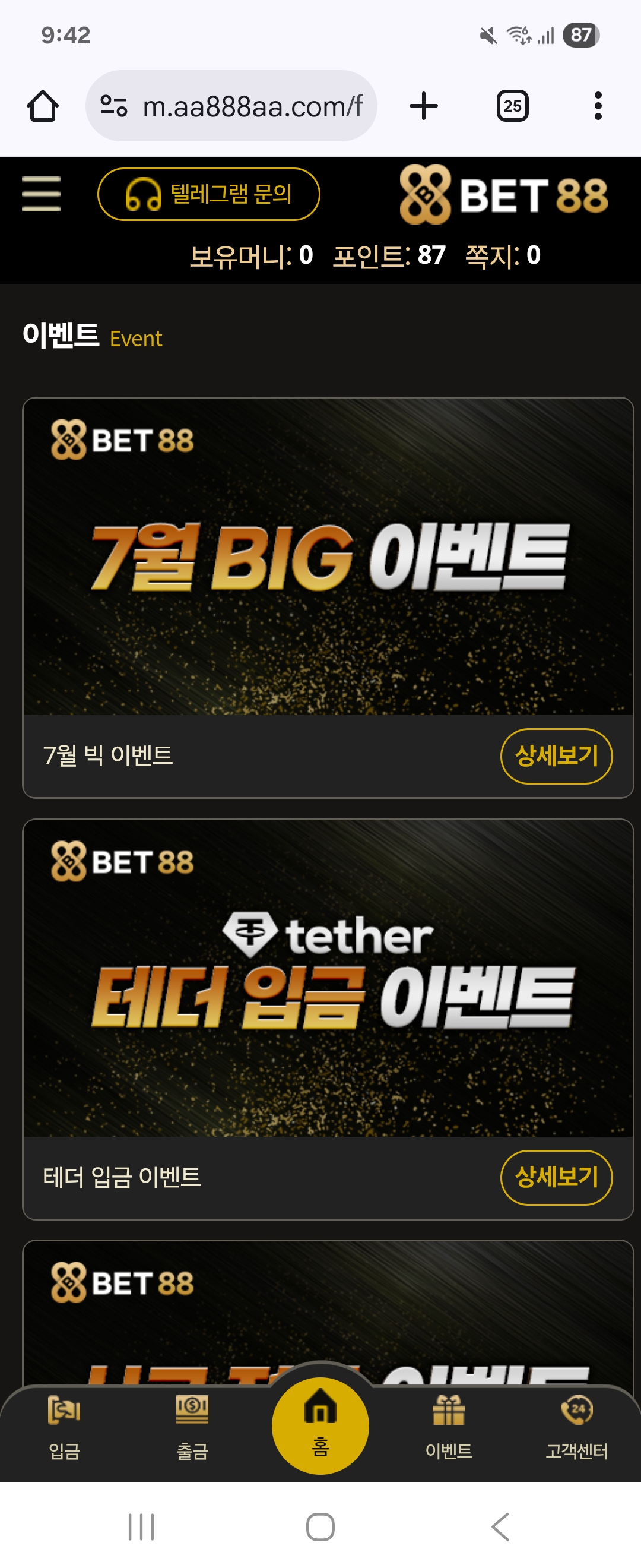 벳88후기입니다 가입하고 이제 1년넘게 이용중에 있는대 칼충전에 칼환전 대박임다 이벤트도 매달마다 야무지게 바껴서 1일날마다 기대되네요 ㅎ 바카라도 게임 종류별로 다있고 스포츠도 핸디도 많고 배당이 넘 맘에드네요 4월도 열심히 이용해서 이겨봐야겠네요 ㅎ