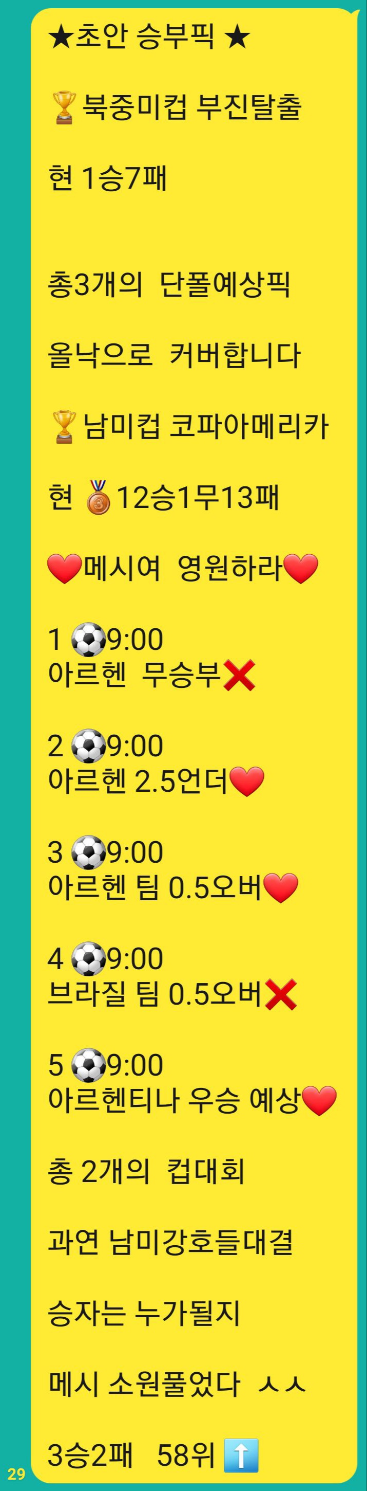 메이저사이트 프리미엄픽 공간입니다. 여기서 제공하는 픽을통해 검증된 메이저사이트에 배팅 하실때 유용한 정보입니다. 유출픽이 아닌 정상픽입니다. 유저님들이 이용가능한 사이트에 저희픽을 이용해 베팅하셔두 무방하십니다. 다만 무단배포 적발시 경고없이 탈퇴처리 되십니다. 저희 제휴 메이저사이트에 베팅하셔도 무방합니다. 이곳 프리미엄픽은 높은 승률을 자랑하며 선별한 픽만을 제공합니다.