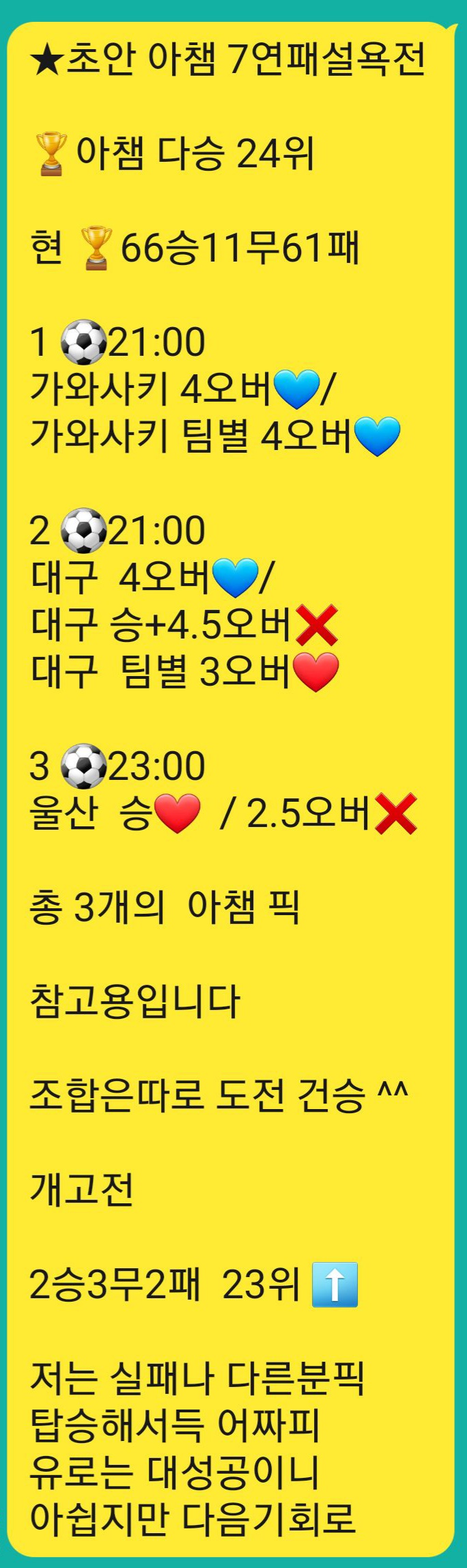 메이저사이트 프리미엄픽 공간입니다. 여기서 제공하는 픽을통해 검증된 메이저사이트에 배팅 하실때 유용한 정보입니다. 유출픽이 아닌 정상픽입니다. 유저님들이 이용가능한 사이트에 저희픽을 이용해 베팅하셔두 무방하십니다. 다만 무단배포 적발시 경고없이 탈퇴처리 되십니다. 저희 제휴 메이저사이트에 베팅하셔도 무방합니다. 이곳 프리미엄픽은 높은 승률을 자랑하며 선별한 픽만을 제공합니다.