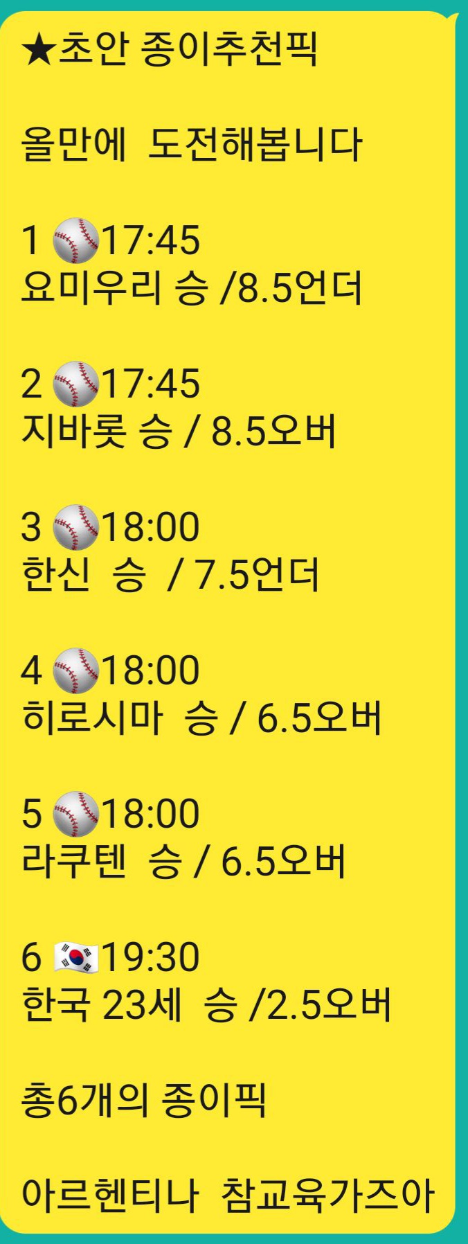 메이저사이트 프리미엄픽 공간입니다. 여기서 제공하는 픽을통해 검증된 메이저사이트에 배팅 하실때 유용한 정보입니다. 유출픽이 아닌 정상픽입니다. 유저님들이 이용가능한 사이트에 저희픽을 이용해 베팅하셔두 무방하십니다. 다만 무단배포 적발시 경고없이 탈퇴처리 되십니다. 저희 제휴 메이저사이트에 베팅하셔도 무방합니다. 이곳 프리미엄픽은 높은 승률을 자랑하며 선별한 픽만을 제공합니다.