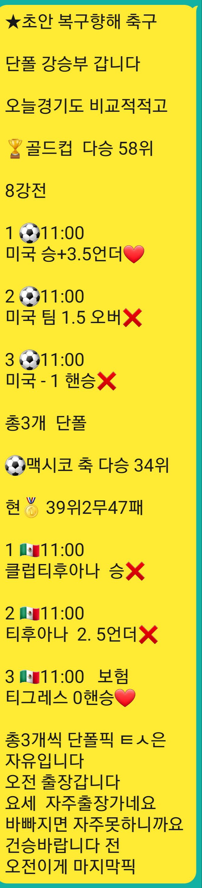 메이저사이트 프리미엄픽 공간입니다. 여기서 제공하는 픽을통해 검증된 메이저사이트에 배팅 하실때 유용한 정보입니다. 유출픽이 아닌 정상픽입니다. 유저님들이 이용가능한 사이트에 저희픽을 이용해 베팅하셔두 무방하십니다. 다만 무단배포 적발시 경고없이 탈퇴처리 되십니다. 저희 제휴 메이저사이트에 베팅하셔도 무방합니다. 이곳 프리미엄픽은 높은 승률을 자랑하며 선별한 픽만을 제공합니다.