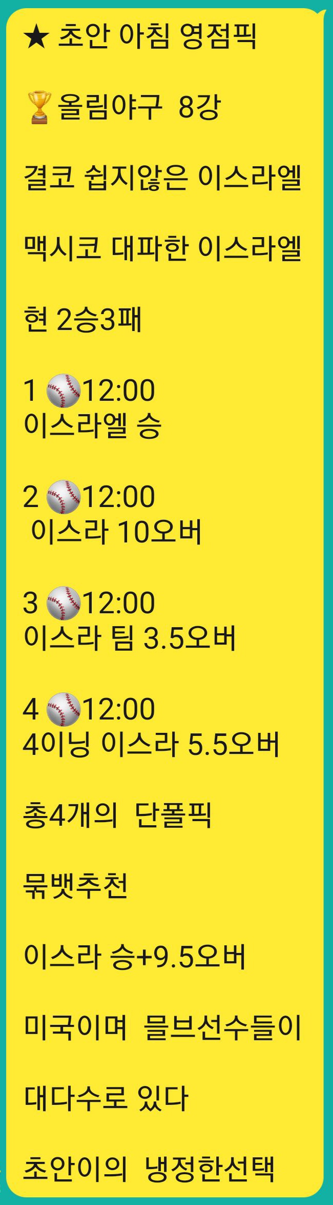 메이저사이트 프리미엄픽 공간입니다. 여기서 제공하는 픽을통해 검증된 메이저사이트에 배팅 하실때 유용한 정보입니다. 유출픽이 아닌 정상픽입니다. 유저님들이 이용가능한 사이트에 저희픽을 이용해 베팅하셔두 무방하십니다. 다만 무단배포 적발시 경고없이 탈퇴처리 되십니다. 저희 제휴 메이저사이트에 베팅하셔도 무방합니다. 이곳 프리미엄픽은 높은 승률을 자랑하며 선별한 픽만을 제공합니다.