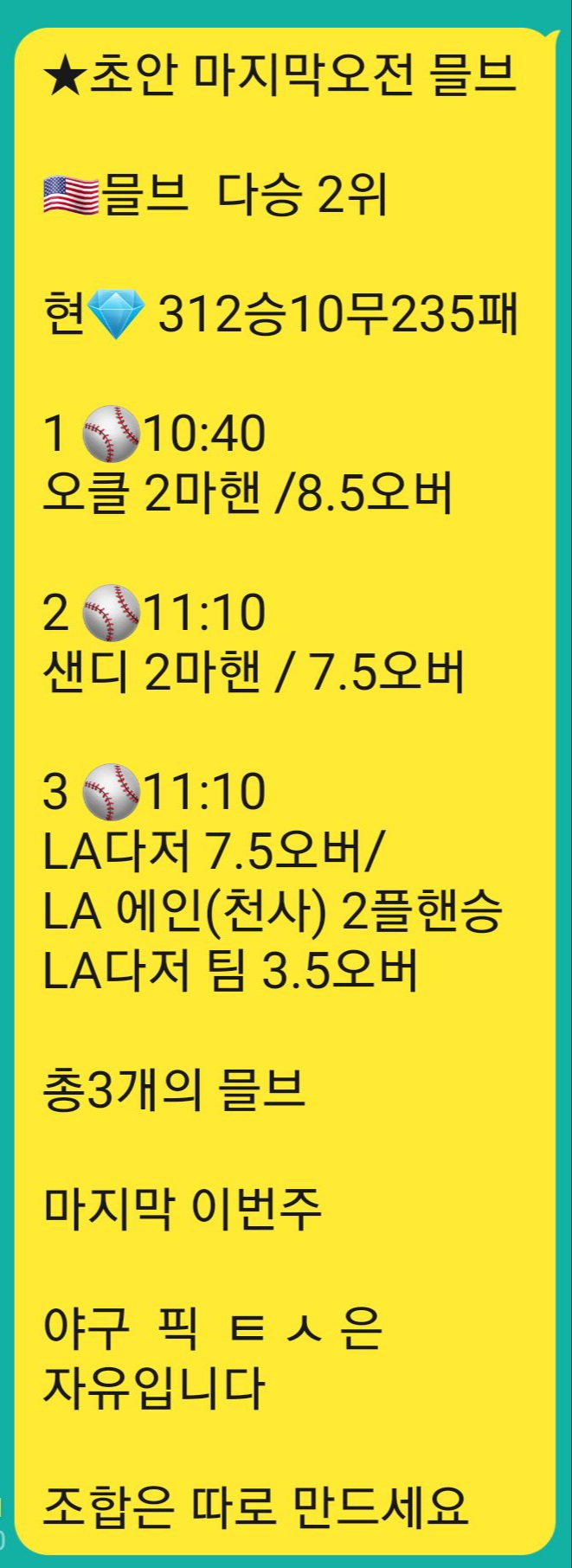 초안 믈브 오전 마지막승부
