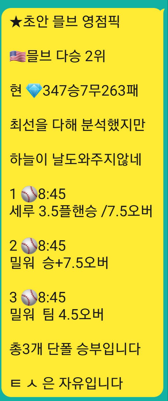 메이저사이트 프리미엄픽 공간입니다. 여기서 제공하는 픽을통해 검증된 메이저사이트에 배팅 하실때 유용한 정보입니다. 유출픽이 아닌 정상픽입니다. 유저님들이 이용가능한 사이트에 저희픽을 이용해 베팅하셔두 무방하십니다. 다만 무단배포 적발시 경고없이 탈퇴처리 되십니다. 저희 제휴 메이저사이트에 베팅하셔도 무방합니다. 이곳 프리미엄픽은 높은 승률을 자랑하며 선별한 픽만을 제공합니다.