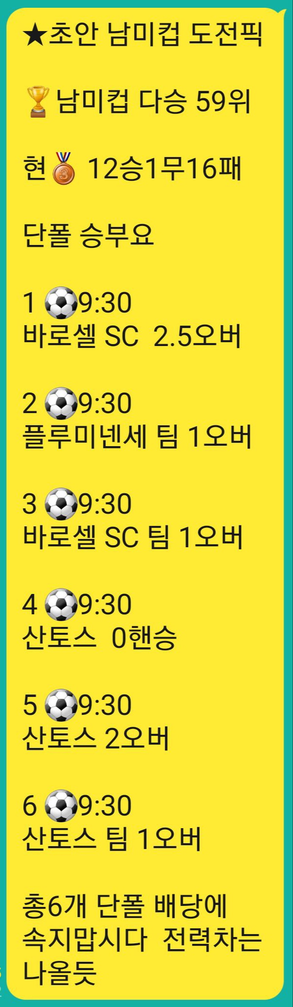 메이저사이트 프리미엄픽 공간입니다. 여기서 제공하는 픽을통해 검증된 메이저사이트에 배팅 하실때 유용한 정보입니다. 유출픽이 아닌 정상픽입니다. 유저님들이 이용가능한 사이트에 저희픽을 이용해 베팅하셔두 무방하십니다. 다만 무단배포 적발시 경고없이 탈퇴처리 되십니다. 저희 제휴 메이저사이트에 베팅하셔도 무방합니다. 이곳 프리미엄픽은 높은 승률을 자랑하며 선별한 픽만을 제공합니다.