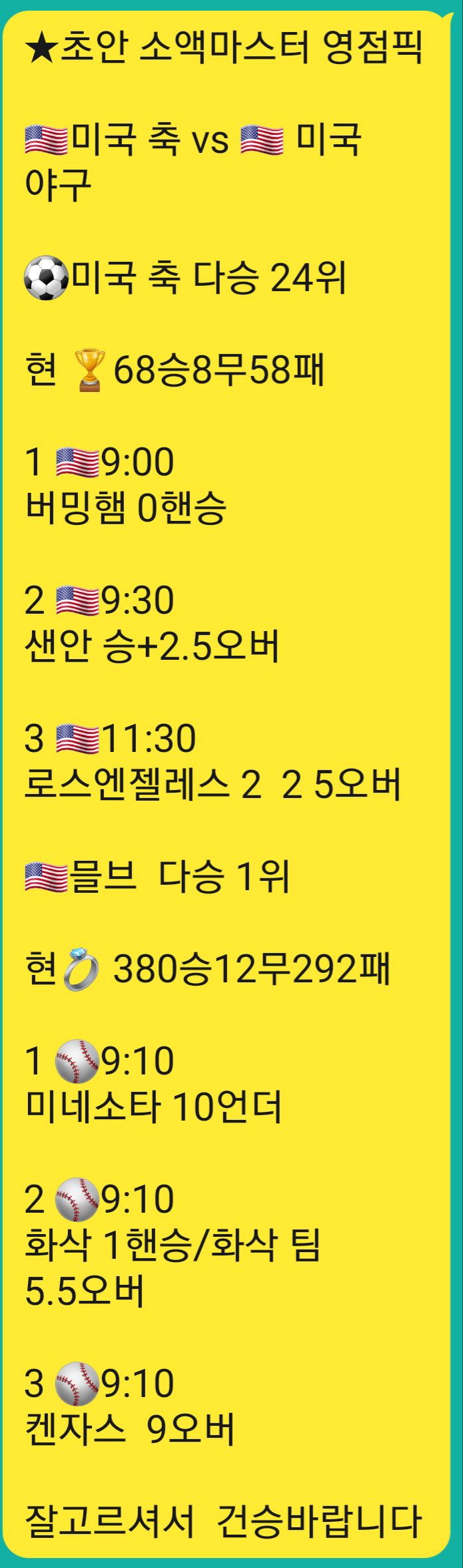 메이저사이트 프리미엄픽 공간입니다. 여기서 제공하는 픽을통해 검증된 메이저사이트에 배팅 하실때 유용한 정보입니다. 유출픽이 아닌 정상픽입니다. 유저님들이 이용가능한 사이트에 저희픽을 이용해 베팅하셔두 무방하십니다. 다만 무단배포 적발시 경고없이 탈퇴처리 되십니다. 저희 제휴 메이저사이트에 베팅하셔도 무방합니다. 이곳 프리미엄픽은 높은 승률을 자랑하며 선별한 픽만을 제공합니다.