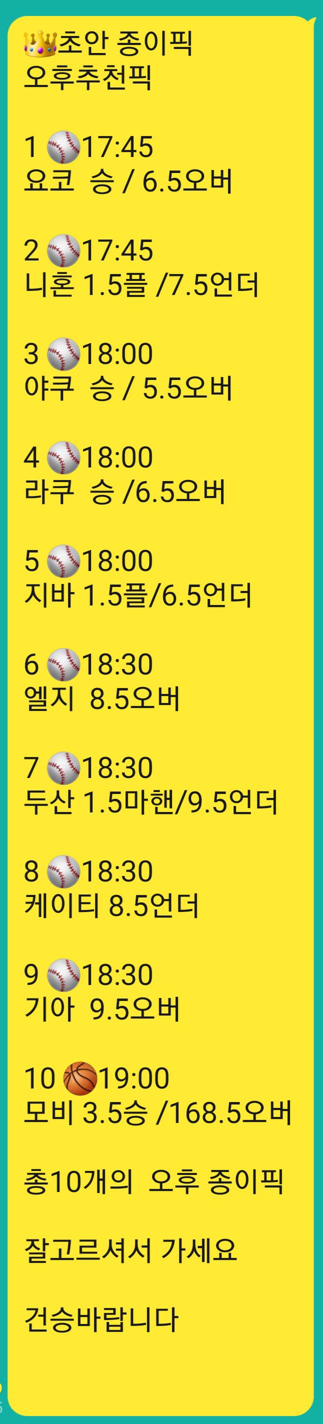 07:15 메이저사이트 프리미엄픽 공간입니다. 여기서 제공하는 픽을통해 검증된 메이저사이트에 배팅 하실때 유용한 정보입니다. 유출픽이 아닌 정상픽입니다. 유저님들이 이용가능한 사이트에 저희픽을 이용해 베팅하셔두 무방하십니다. 다만 무단배포 적발시 경고없이 탈퇴처리 되십니다. 저희 제휴 메이저사이트에 베팅하셔도 무방합니다. 이곳 프리미엄픽은 높은 승률을 자랑하며 선별한 픽만을 제공합니다.