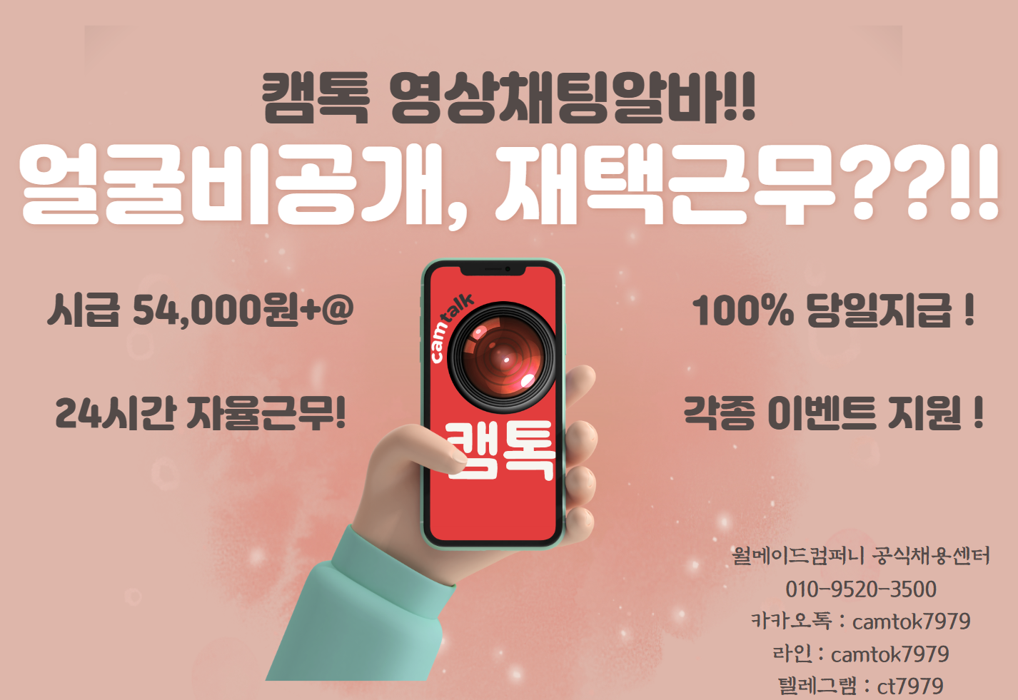구인 여성 영상통화 재택근무~ 시급54000원! 당일지급! , 합법o
