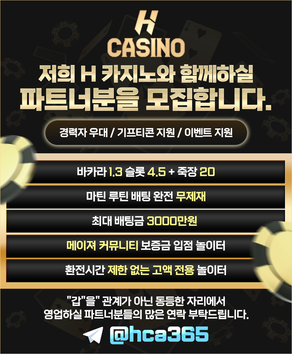구인 H카지노 함께하실 파트너 모집중 [ 무제재 ]